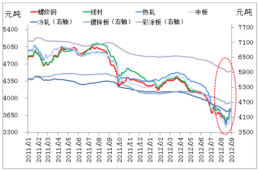 今年9月份以來,市場愈發(fā)撲朔迷離,在國家發(fā)改委審批萬億項(xiàng)目和美聯(lián)儲發(fā)布QE3以及英國推行OTC的推動下,鋼材市場呈現(xiàn)出“一波三折、寬幅震蕩”的運(yùn)行態(tài)勢。一邊是國內(nèi)外利好消息的刺激,另一邊是全球經(jīng)濟(jì)的放緩和鋼材需求的低迷,多空雙方激烈博弈。各原材料品種、各鋼種以及各地區(qū)之間也表現(xiàn)迥異,有的品種、地區(qū)漲跌明顯,而另一些品種、地區(qū)則表現(xiàn)相對平穩(wěn),市場呈現(xiàn)出如此亂象的原因何在?未來鋼價(jià)走勢如何?下文就此進(jìn)行闡述。
