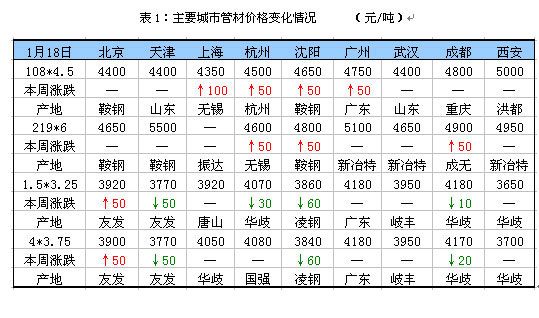成本支撐不足,管價略有回落(1.14日-18日)