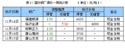 3、本周管廠以下調為主,整體幅度偏小。